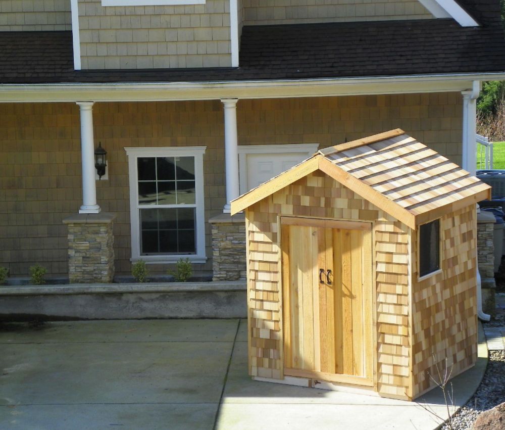 Beautifully designed cedar building provides convenient outdoor storage space while complementing your home.
