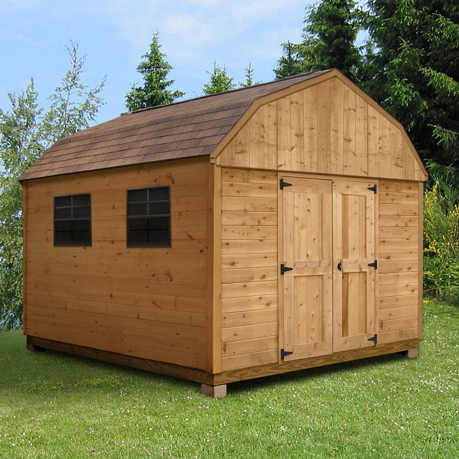 Beautifully designed wood building provides convenient outdoor storage space while complementing your home.
